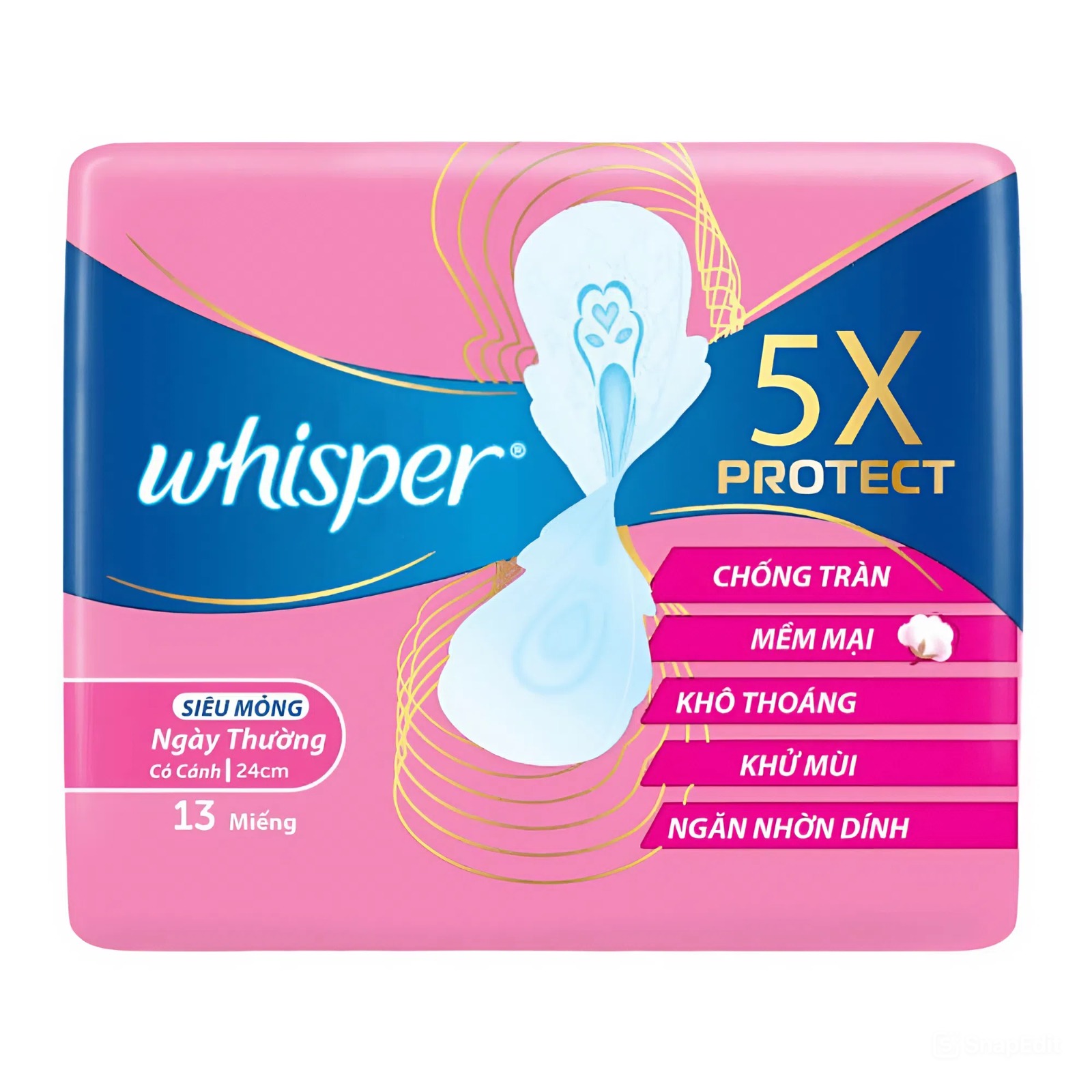 Whisper 5X Protect Ultra Thin Sanitary Pads (24cm) 13 Pieces