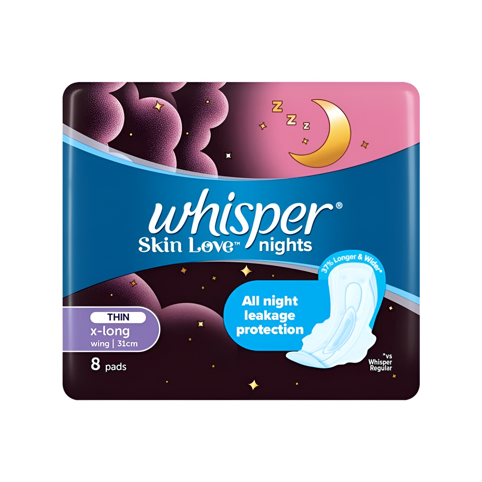 Whisper Skin Love Nights Thin X-Long Pads 31cm 8 Pieces